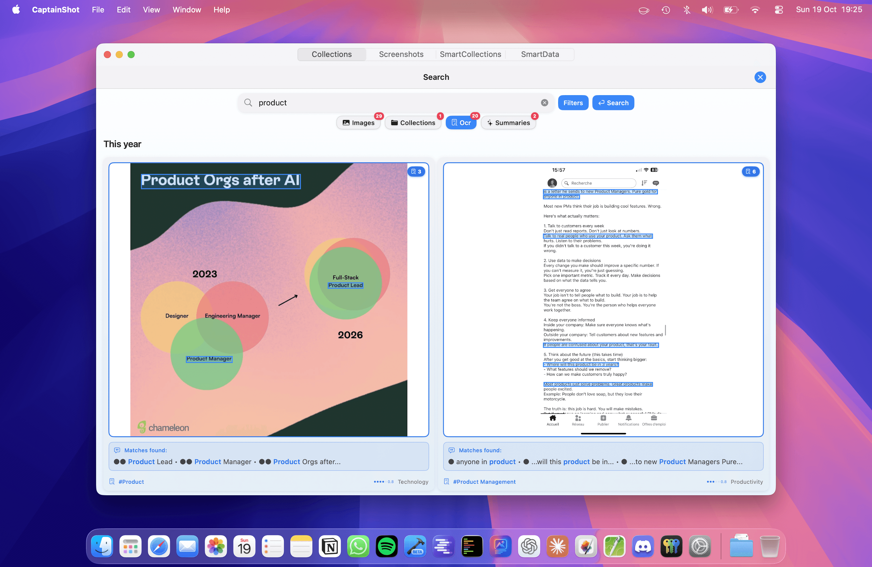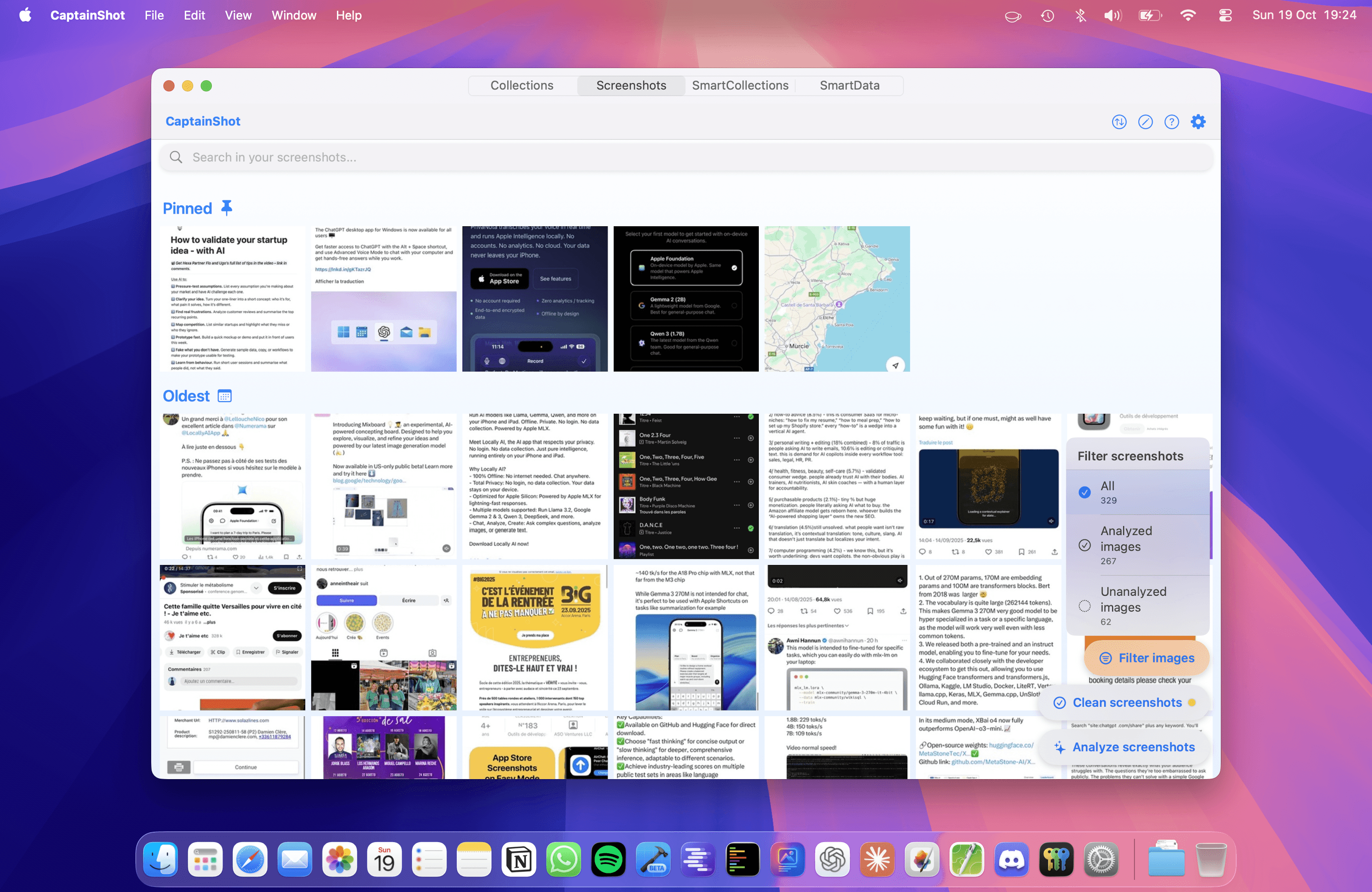 CaptainShot uses artificial intelligence locally to transform your screenshots into an organized library.